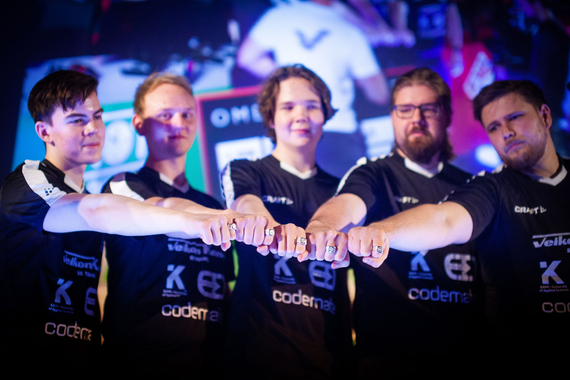 Mestarit palkittiin Tammen Korun valmistamilla hopeisilla mestaruussormuksilla.